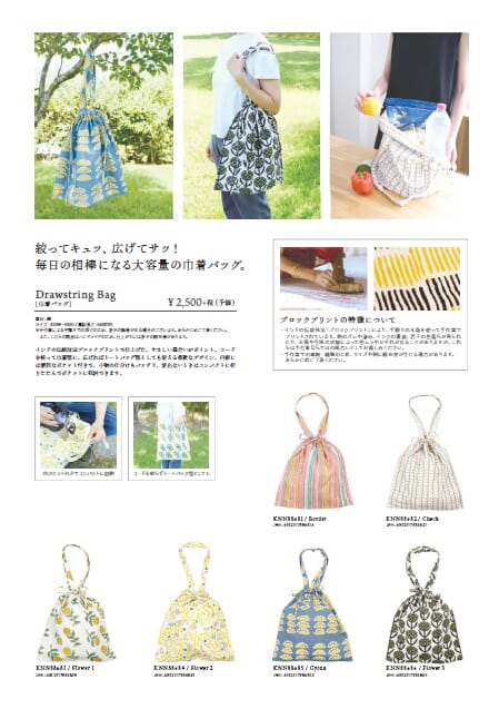 インドのブロックプリントを施した味のある風合いに折り畳んでエコバッグとしても使える