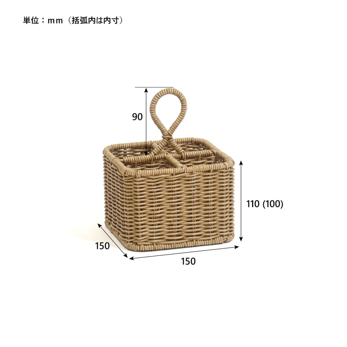 カトラリースタンド(4分割):約 w150×d150×h110mm / 持ち手:h90mm,重量:約 375g ツールスタンド(2分割):約 w200×d110×h170mm / 持ち手:h120mm,重量:約 400g |