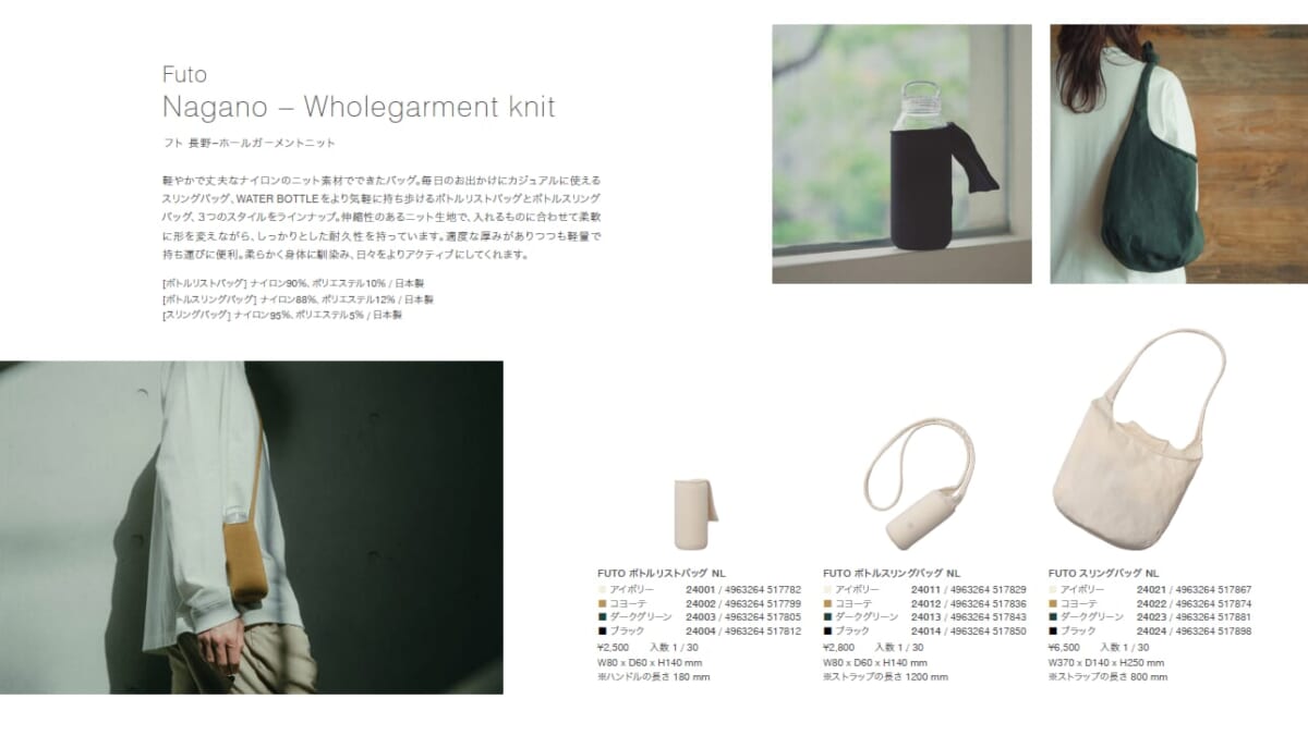 毎日のお出かけにカジュアルに使えるスリングバッグ、WATER BOTTLEをより気軽に持ち歩けるボトルリストバッグとボトルスリングバッグ、3つのスタイルをラインナップ。